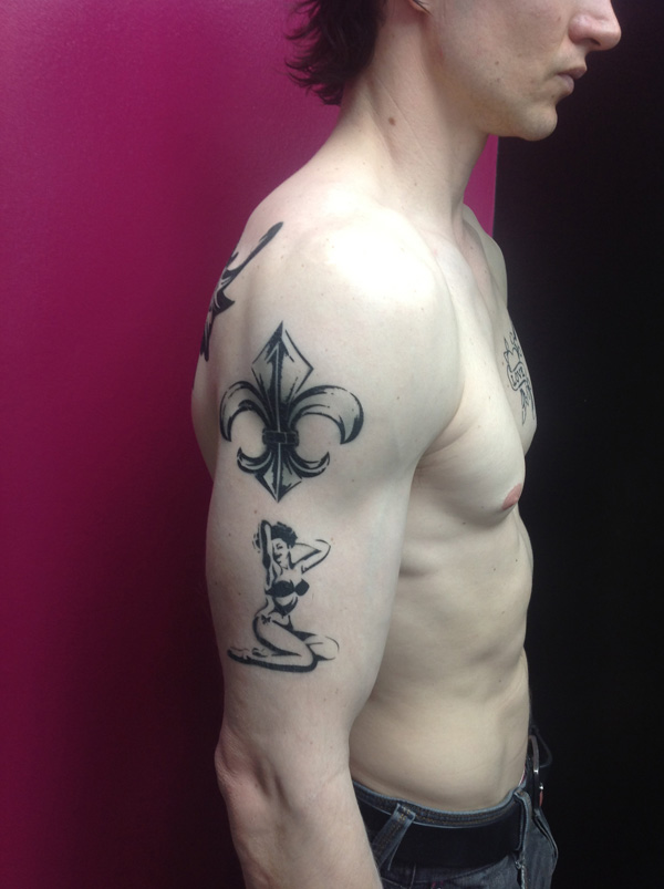 A client approached us needing a set of character tattoos. The character was edgy and tough yet vulnerable and mysterious. A vigilante super hero type. We took all that information and set them him up with these tats from our Faux Tattoo Stencils collection. You can see the finished result here.